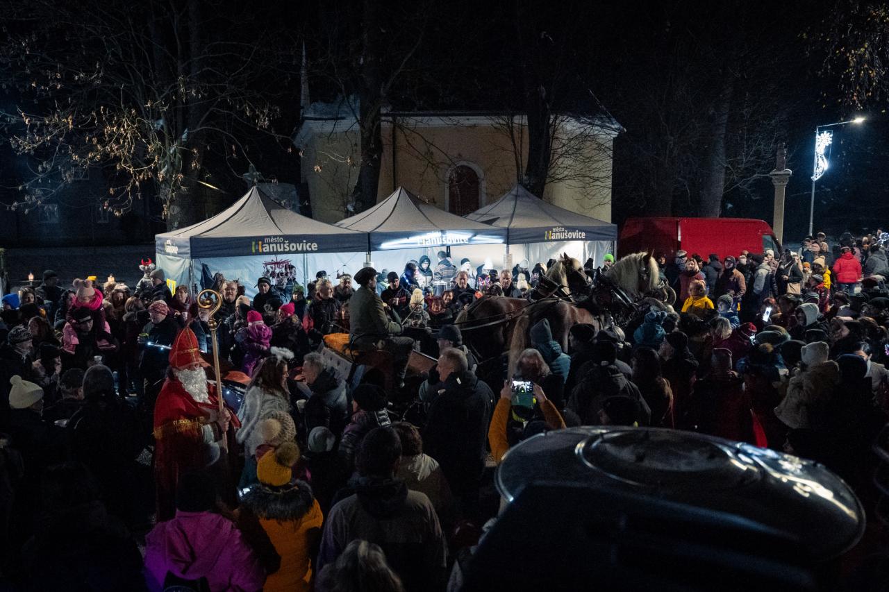 Tak jsme se zase po roce sešli, zazpívali si koledy spolu s dětmi ze ZŠ a MŠ Hanušovice, potkali se s čerty krampusáky a jejich kolegy a rozsvítili vánoční strom na Hlavní ulici.
